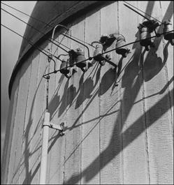 GERMANY. 1932. Sandwiched image of gastanks and a classical fassade...