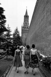 SOVIET UNION. Moscow. 1957. A busy workaday crowd walks by Red...