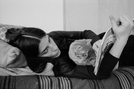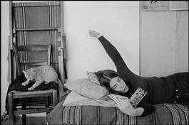France. Paris. Wife on the phone, husband reading the newspaper....