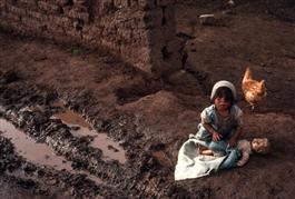 PERU. Near Cajamarca. Children prepare corn for drying. 1991....