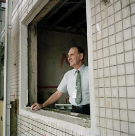GB. England. London. Hackney. Holly Street. One of last residents...