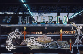 MEXICO. Bakers paint skeletons on their windows. Skeletons making...