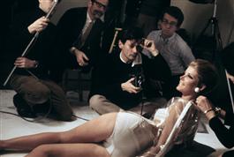 USA. New York City. 1966. Richard AVEDON in his studio with model,...