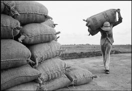 EL SALVADOR. San Vicente. 1979. Loading coffee for export, cooperative...