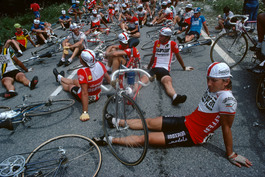 Tour de France 1982. Riders relax whilst the Tour organisers...