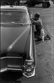 USA. New York City. Brooklyn. Boss in a Cadillac speaking to...