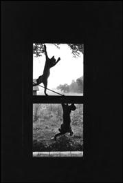 USA. New York State. Woodstock. Cats on screen door. 1969