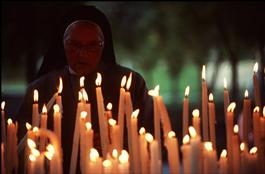 FRANCE. Hautes-Pyrenees department. Town of Lourdes. 1995. Candles...