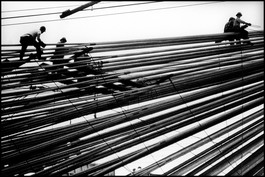 USA. NYC. 1963. Construction of the Verrazano Bridge.