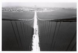 USA. New York City. 1963. Verrazano Narrows Bridge and the Queen...