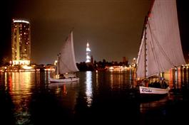Africa. Egypt. Cairo. Feluccas (sailing boats) on the River...
