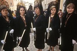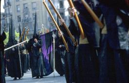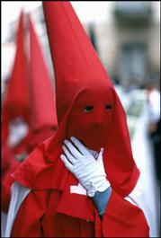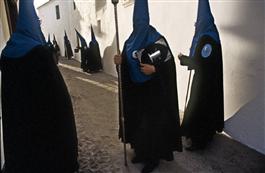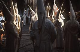 SPAIN Sevilla: Eastern:Hooded peple inProcession.