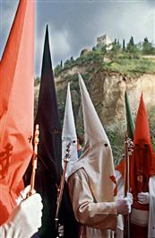 SPAIN,Granada: Eastern:Hooded peple inProcession.