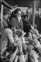 IRAN. Tehran. Upon his arrival, a hysterical crowd surrounds...