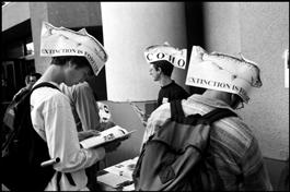 USA. California. Oakland. Protesters outside an Oakland hearing....