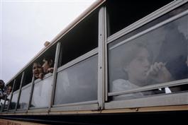 USA. Oklahoma City, Oklahoma. 1994. Students on a bus to Taft...