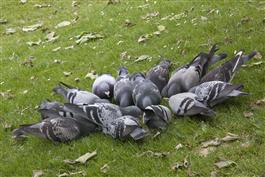 BELGIUM. Brussels. 2009. concentrated group of pigeons along...