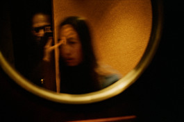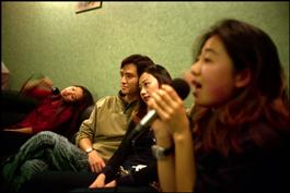 CHINA. Beijing 2001. Singer Jiang Xin in her car, in San Li Tun....
