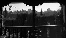 SPAIN, Granada: View of the Alhambra from a balcony.