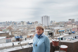 AZERBAIJAN. Baku. February 2012. Inhabitant of last building...
