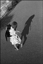RUSSIA. Siberia. Republic of Tuva. Kyzyl. A girl holds her pet...
