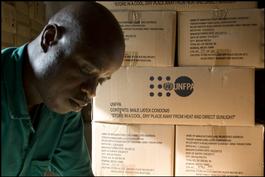 BENIN, Cotonou, mars 2013. Warehouse of Plan Benin. Oyinda Dedegbe,...