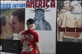USA. Tampa, Florida. Republican National Convention. 2012. Anti-Mormon,...