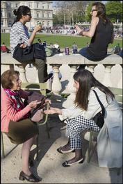 75006. Luxembourg Gardens. Women speaking. FRANCE. Paris. 2013....