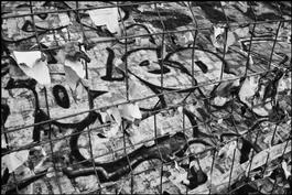 Graffiti behind a fence, Canal St. Martin. 75010. FRANCE. Paris....