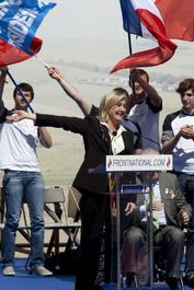 FRANCE. Paris. National Front leader Marine LE PEN celebrates...