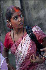 INDIA. 3. West Bengal. Kolkata. Around the KALIGHAT temple. Women...