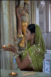 INDIA. 3. West Bengal. Kolkata. PARASNATH Jain temple. A devotee...