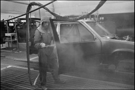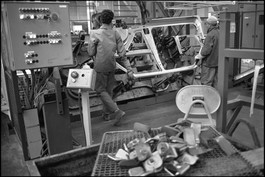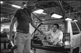France. Yvelines. Flins. Renault plant. Super 5 car assembly line. 1984.