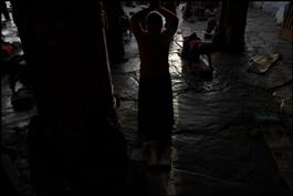 TIBET. Cafe in Draknak, near to the railway line that will link...