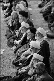 IRAN. Tehran. Ageing mullahs and Ayatollahs at Friday prayers...