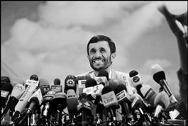 IRAN. Tehran. President Mahmoud AHMADINEJAD at a press conference...