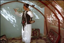 IRAN. Mahan. A dervish recites poetry in a restaurant.