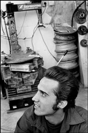 IRAN. Tehran. A young mechanic with a fashionable hairdo in his...