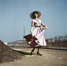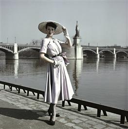 FRANCE. Paris. 1948. Model wearing Dior on the banks of the Seine....