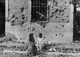 Citizens amid ruins after Nationalist air-raids. Madirid, November-December,...