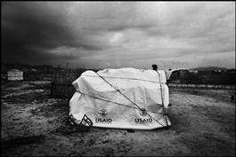 CHAD. BAHAI. 2007. Sudanese refugee covered in a plastic sheet...