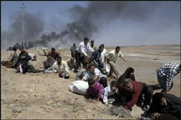 IRAQ. Basra. 03/28/03. Iraki civilians flee Basra as war for...