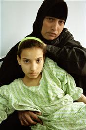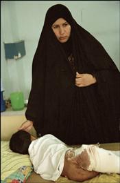 IRAQ. Baghdad. A young victim of the US bombing attented to by...