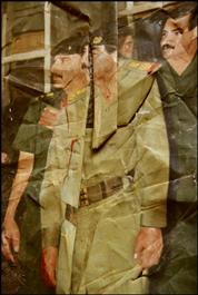IRAQ. Baghdad. President Saddam HUSSEIN is defaced in a painting....