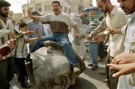 IRAQ. Baghdad. A bronze head of President Saddam HUSSEIN is paraded...