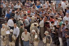 IRAQ. Baghdad. Civilians petition for jobs from US troops.