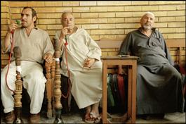 IRAQ. Baghdad. Bubble pipe smokers in the famous Cafe Zahawi....
