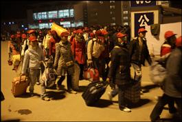 CHINA. Shanghai railway station. "Mingong" migrant workers going...