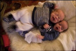 FRANCE. Fecamp. 2008. At home. Twins Violette and Gaston with...