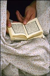 IRAN. Tehran. Prayer matt of a Shia with writings from the Koran,...